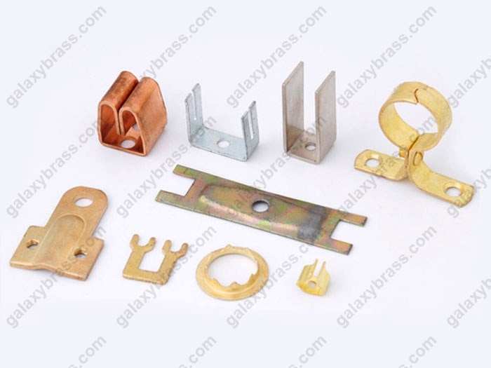 Stamped / Pressed parts are used in varieties of applications like riveting, Fitting, Supports, Locking, Fastening & for various uses in electromechanical & Automobile Industries. It comprises a lot of types like Washers, Lugs, Tags, Gaskets, Links, Banana Plugs, Terminals, Tapping Clips, Hinges etc. Apart from Plain Washers, all other varieties are exclusively developed as per custom designs & demands. Material : Brass Sheet Half Hard as per IS 410 or 63/37 Half Hard Brass Sheet. Length / Size: Any size as per custom design or requirement Finish and Coating : Natural, Nickle Plated, Tin Plated brass sheet cutting parts, brass pressed parts or any coating as per customer specification.